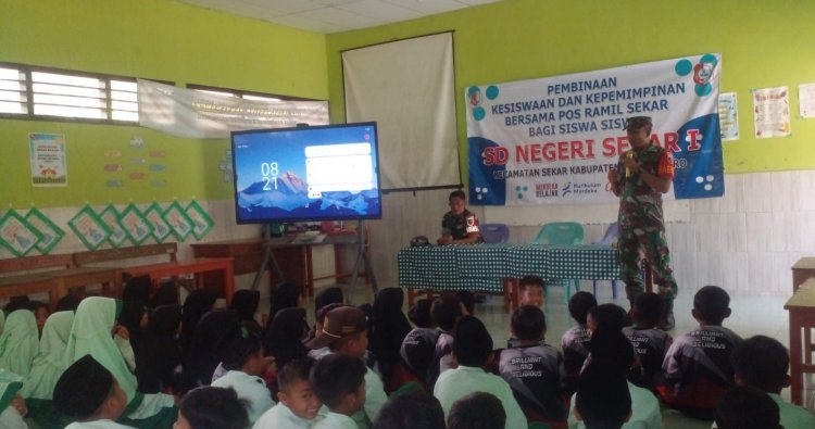 Bertempat dihalaman Sekolah Dasar Negeri (SDN) Sekar I Kecamatan Sekar Kabupaten Bojonegoro, sebanyak 70 siswa dan siswi dari kelas 1 sampai dengan kelas 6 dibekali materi Wawasan Kebangsaan (Wasbang) oleh para Babinsa, Rabu (19/11/2025).